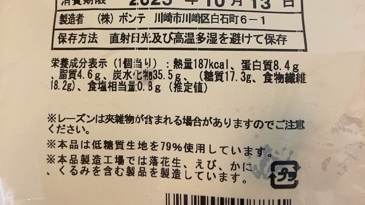”従来のレーズンパンと比べて糖質70%オフ”ではない点に注意が必要ですが、